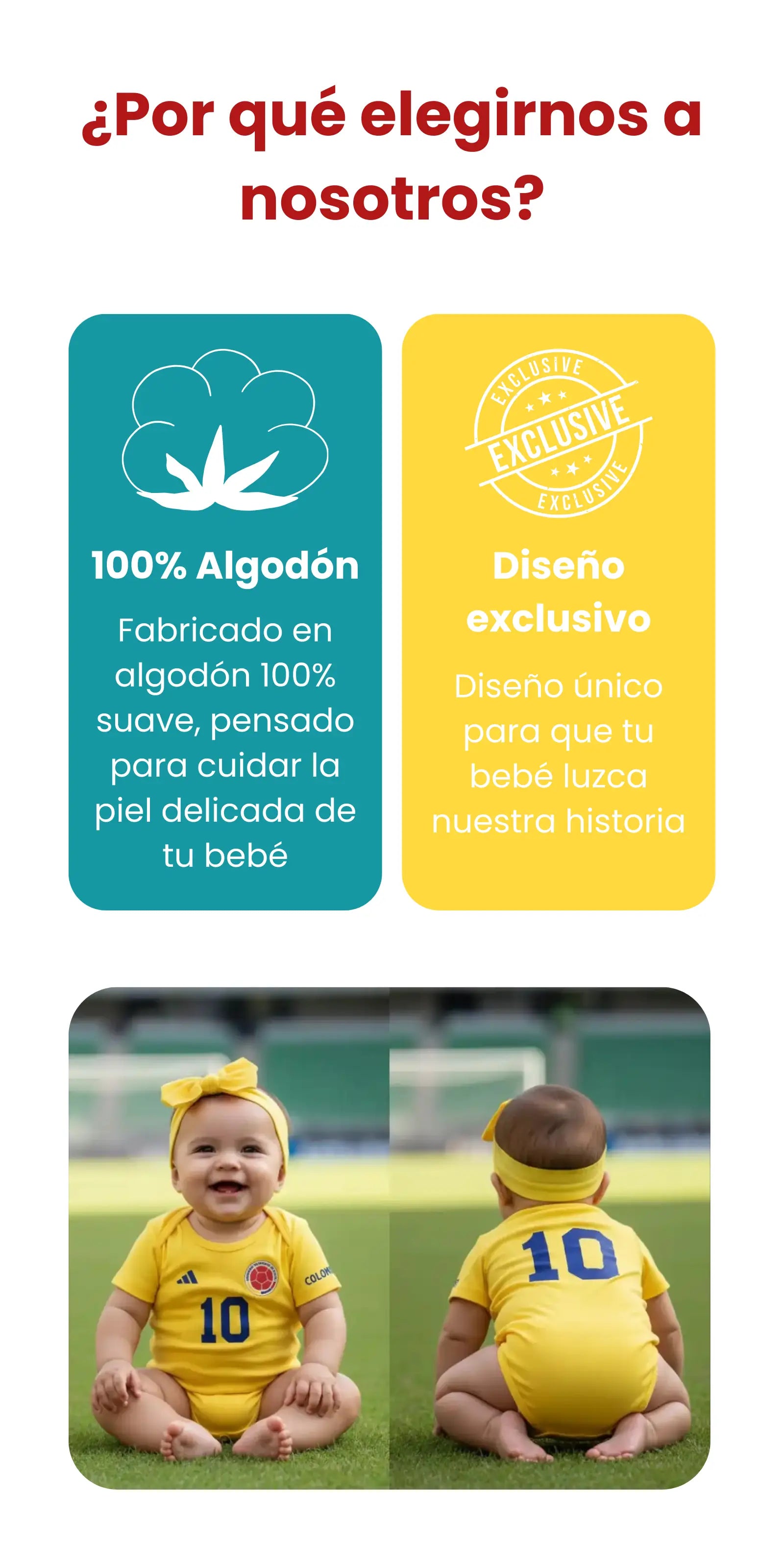 Nuestros bodies están confeccionados con algodón suave de alta calidad, ideal para la piel delicada del bebé. Es hipoalergénico y muy cómodo.